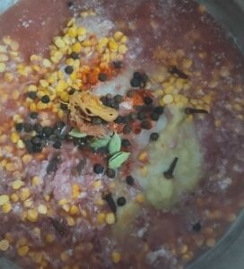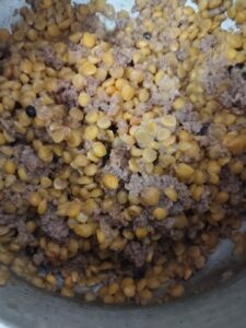 अब इसे 3-4 सीटी आने तक पकाएं ताकि मांस और चना दाल अच्छी तरह गल जाए।